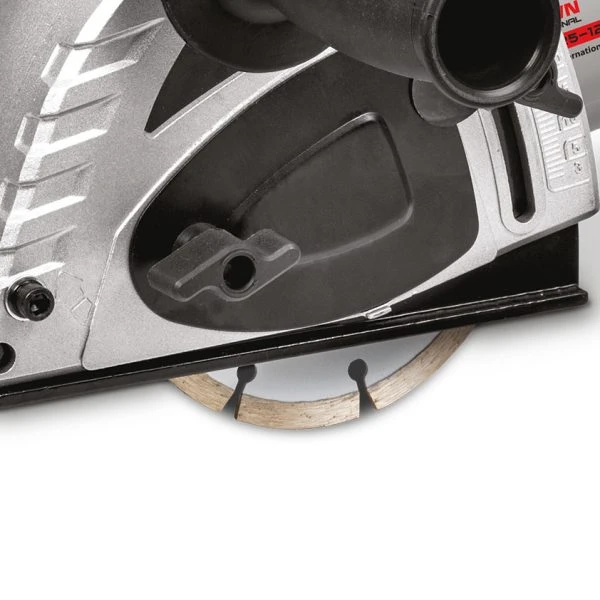 قطر تیغه قابل استفاده در این شیارزن ۱۲۵ میلیمتر بوده و عمق برش آن در بازه ۵ تا ۲۹ میلیمتر قابل تنظیم است. همچنین عرض برش بین ۸ تا ۳۰ میلیمتر تغییر میکند که این قابلیت، انعطافپذیری بالایی در اجرای انواع شیارها ایجاد میکند. حداکثر ضخامت دیسک قابل نصب ۲.۲ میلیمتر بوده و دستگاه از دیسکهایی با سوراخ ۲۲ تا ۲۳ میلیمتر پشتیبانی میکند. وزن خالص ۴.۸۵ کیلوگرمی دستگاه، تعادل مناسبی میان استحکام و سهولت کنترل ایجاد کرده و مانع خستگی زودهنگام کاربر در استفادههای طولانی میشود. این دستگاه به قفلکن کلید مجهز است که در کارهای مداوم، کنترل دستگاه را سادهتر میکند. وجود دسته نرم با روکش ضد تعریق، تسلط کاربر را افزایش داده و ایمنی کار را بهبود میبخشد. قابلیت تعویض آسان زغال، نگهداری دستگاه را سریع و بدون دردسر میکند. همچنین سیستم سافت استارت باعث روشن شدن تدریجی دستگاه شده و از وارد شدن شوک ناگهانی به موتور جلوگیری میکند. از دیگر ویژگیهای کاربردی این مدل میتوان به دسته کمکی برای کنترل بهتر و خروجی اتصال به دستگاه مکنده جهت جمعآوری گرد و خاک اشاره کرد که محیط کاری تمیزتر و ایمنتری را فراهم میسازد. این شیارزن همراه با دسته کمکی، آچار آلن، آچار T، آچار صفحه و دفترچه راهنما عرضه میشود؛ از این رو میتوان از این محصول به عنوان یکی از کاربردیترین تجهیزات خانگی و صنعتی موجود در بازار نام برد.