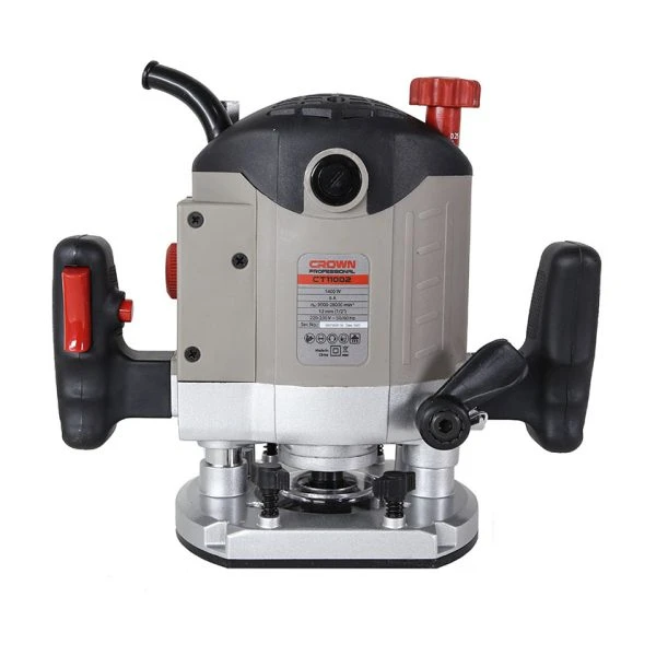 اور فرز نجاری کرون ۱۴۰۰ وات مدل CT11002 یکی از ابزارهای تخصصی و کاربردی در حوزه نجاری و صنایع چوب به شمار میرود که با توجه به مشخصات فنی و طراحی مهندسیشده، برای انجام انواع عملیات فرزکاری با دقت بالا طراحی شده است. این دستگاه با توان ورودی ۱۴۰۰ وات و جریان ۶ آمپر، قدرت مناسبی را برای کارهای نیمهصنعتی و حرفهای فراهم میکند و عملکردی پایدار در استفادههای مداوم ارائه میدهد. سرعت گردش آزاد این محصول در بازه ۹۰۰۰ تا ۲۸۰۰۰ دور در دقیقه قابل تنظیم است که به کمک دیمر تعبیهشده روی دستگاه انجام میشود. این قابلیت به کاربر اجازه میدهد متناسب با نوع متریال و نوع عملیات، سرعت مناسب را انتخاب کرده و کنترل دقیقی روی فرآیند فرزکاری داشته باشد.